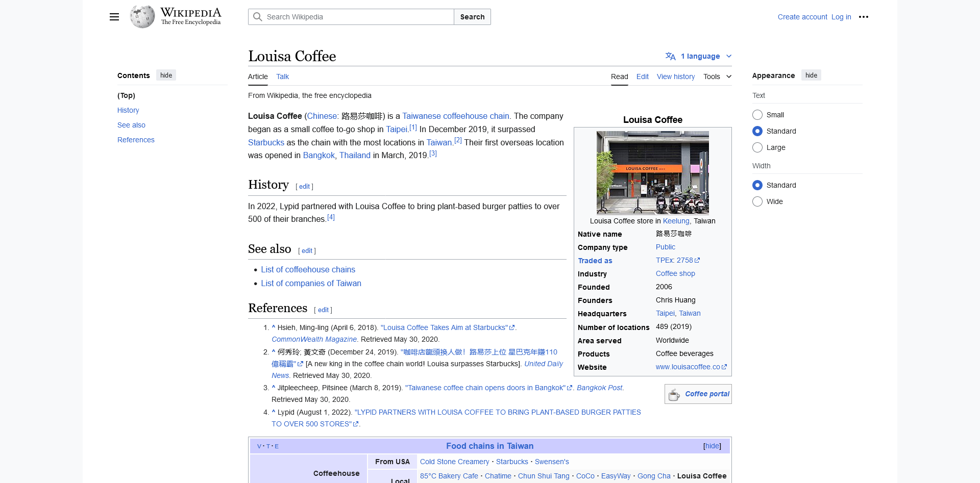 View MoreLouisa Coffee (Chinese: 路易莎咖啡) is a Taiwanese coffeehouse chain. The company began …