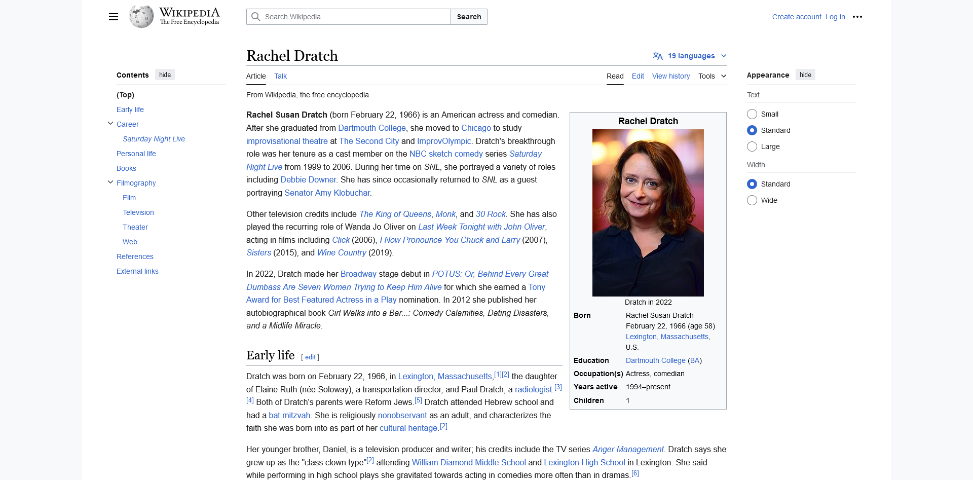 Rachel Susan Dratch (born February 22, 1966) is an American actress, comedian, and writer. Born and raised in Lexington, Massachusetts, she graduated from ...
