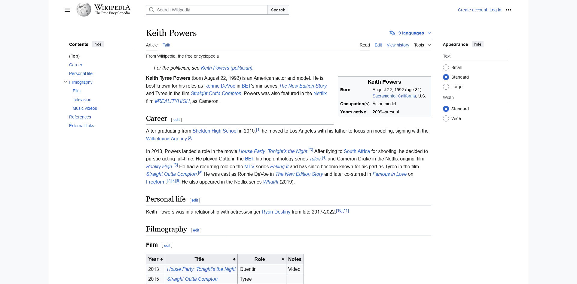View MoreKeith Tyree Powers (born August 22, 1992) is an American actor and model. He is best known for his roles as Ronnie DeVoe in BET's miniseries The New ...