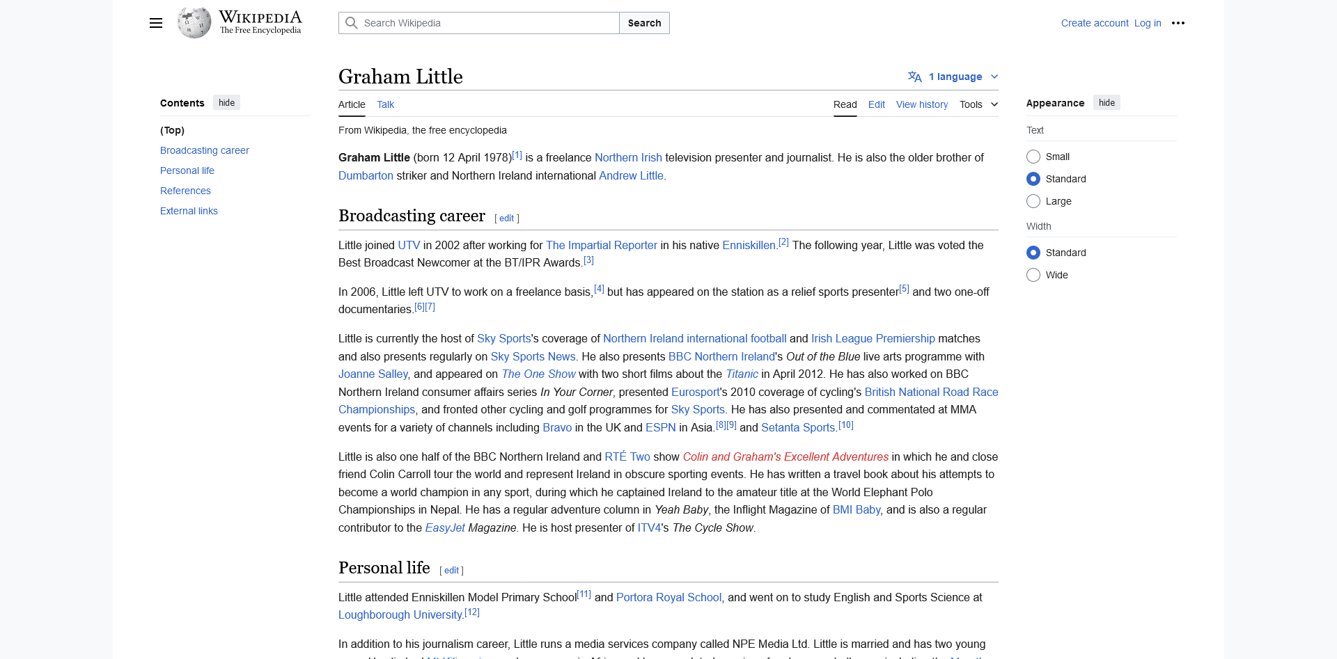View MoreGraham Little (born 12 April 1978)[1] is a freelance Northern Irish television presenter and journalist…