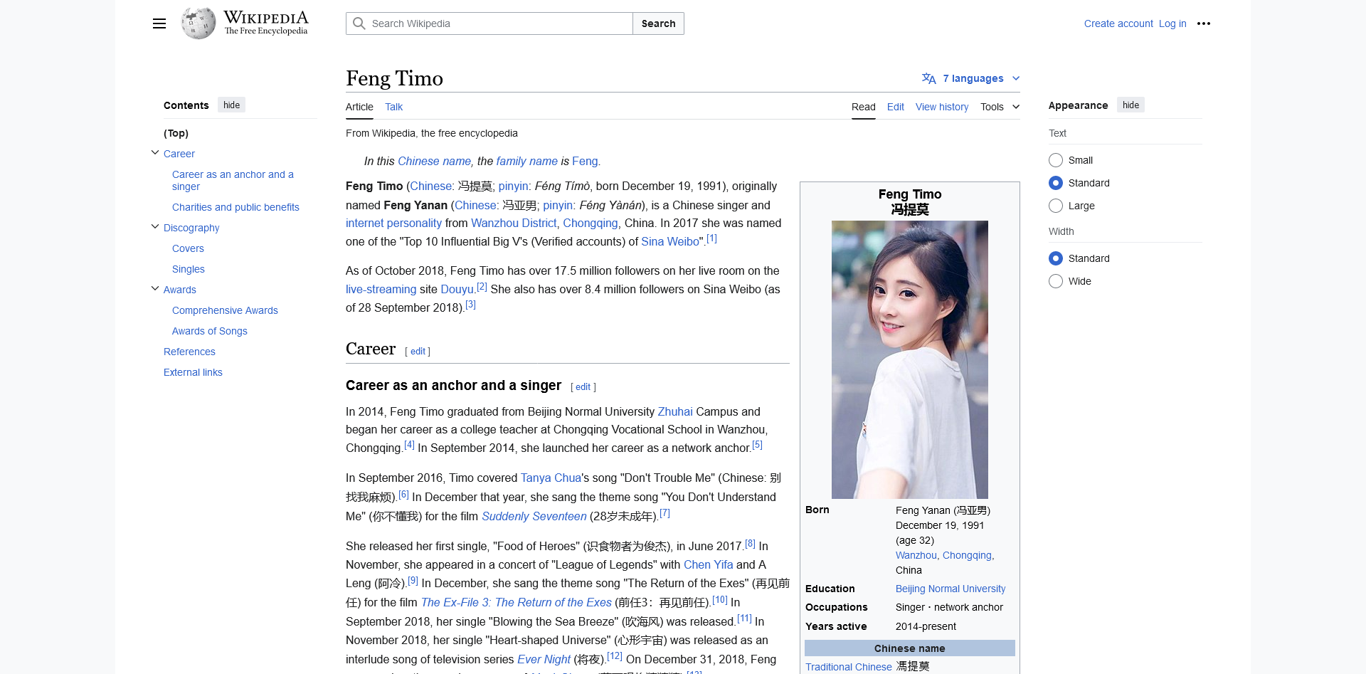 View MoreFeng Timo (Chinese: 冯提莫; pinyin: Féng Tímò, born December 19, 1991), originally named Feng Yanan …
