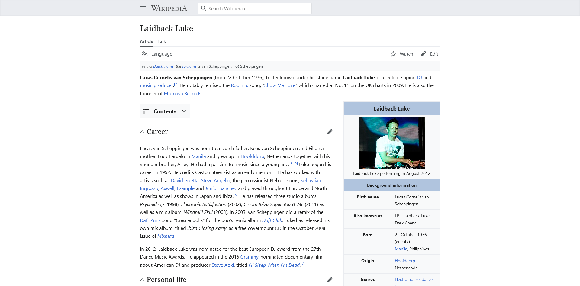 View MoreLucas Cornelis van Scheppingen (born 22 October 1976), better known under his stage name Laidback Luke …